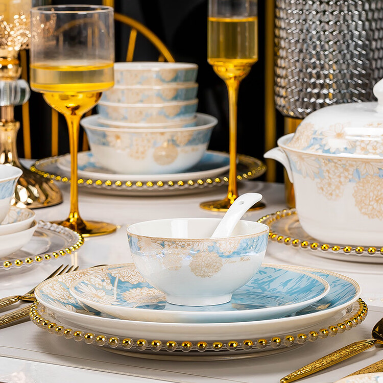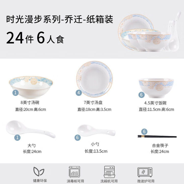 浩雅24头碗碟碗具套装景德镇陶瓷餐具套装碗盘碗碟盘餐具套装时光漫步