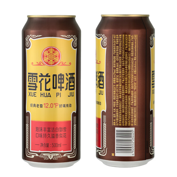 雪花啤酒(Snowbeer)经典老雪 500ml*12听 经典传承口感醇厚 自营热销