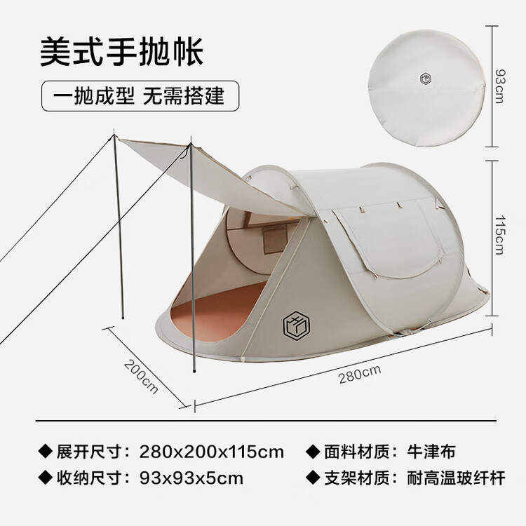 京东京造 超轻涂银手抛帐 户外露营天幕帐篷野餐遮阳棚防晒凉棚