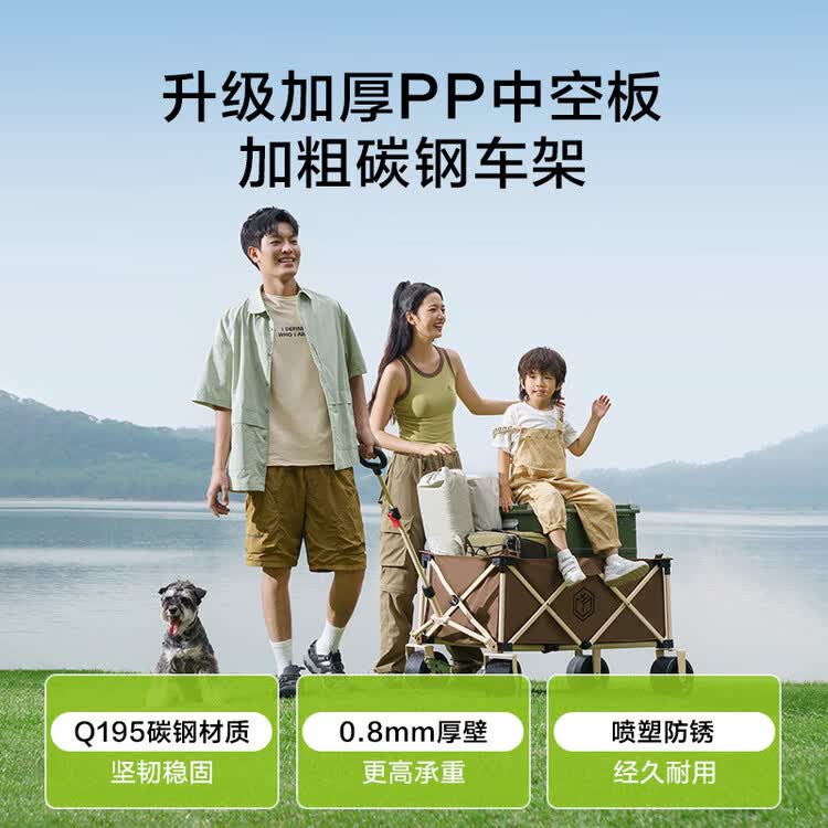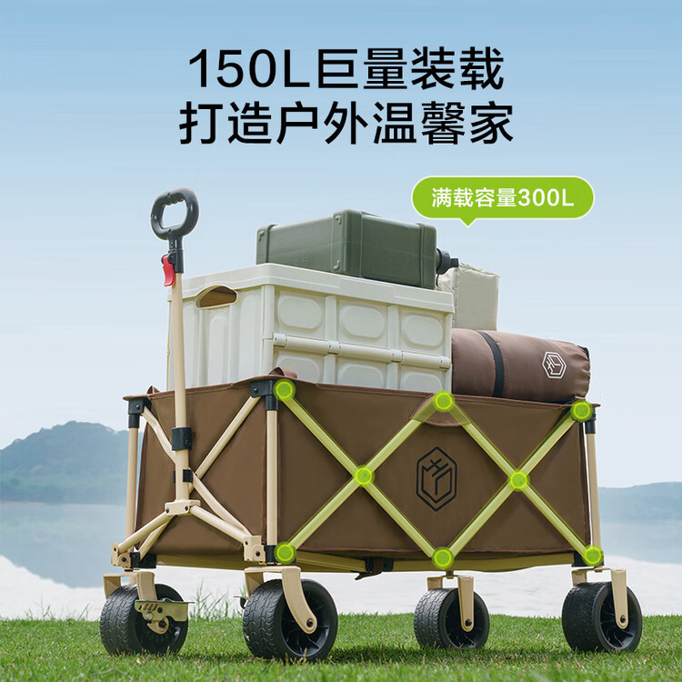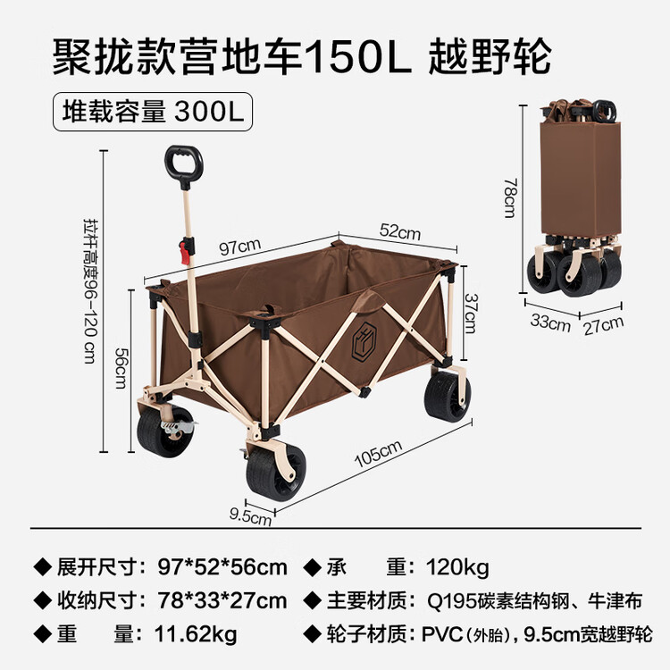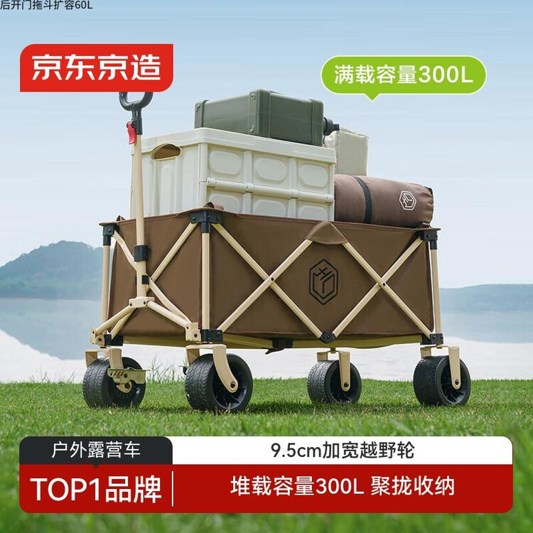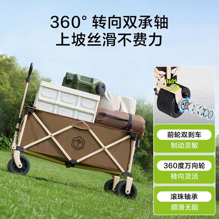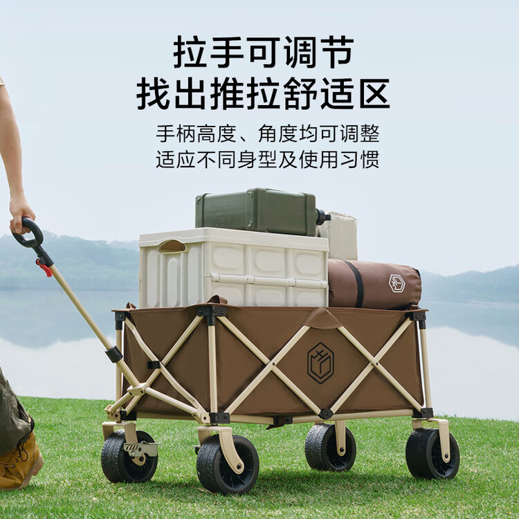 京东直供新 > 运动户外 >户外装备 >京东直供 >京东京造 聚拢型坦克轮户外露营车折叠推车营地车野餐摆摊装备双刹深咖色