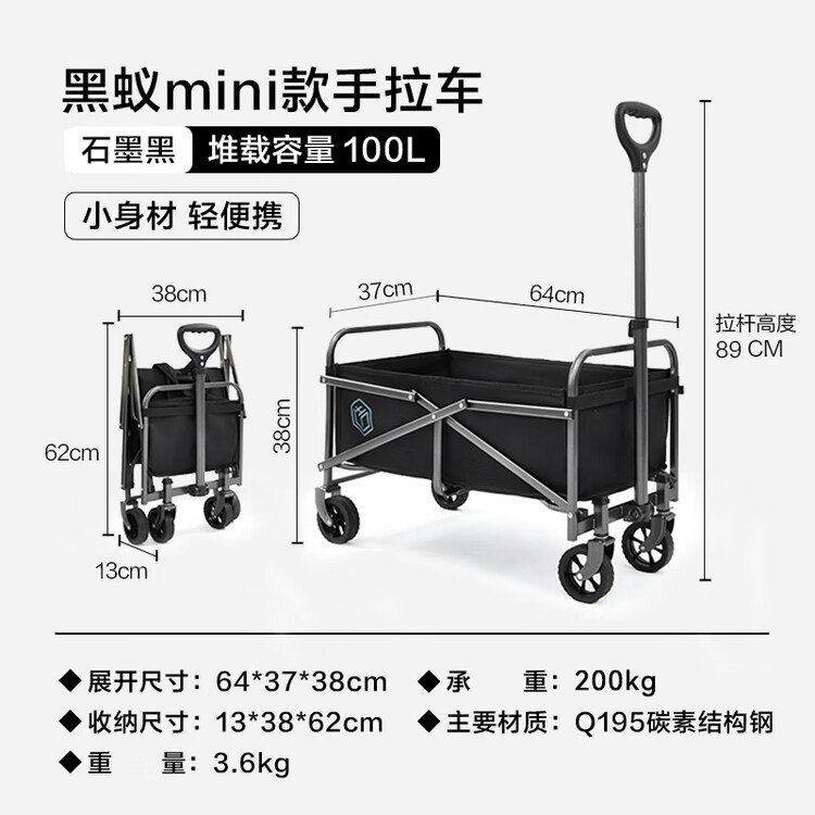 京东京造 户外露营车mini折叠推车营地车野餐装备快递摆摊买菜小拉车拖车