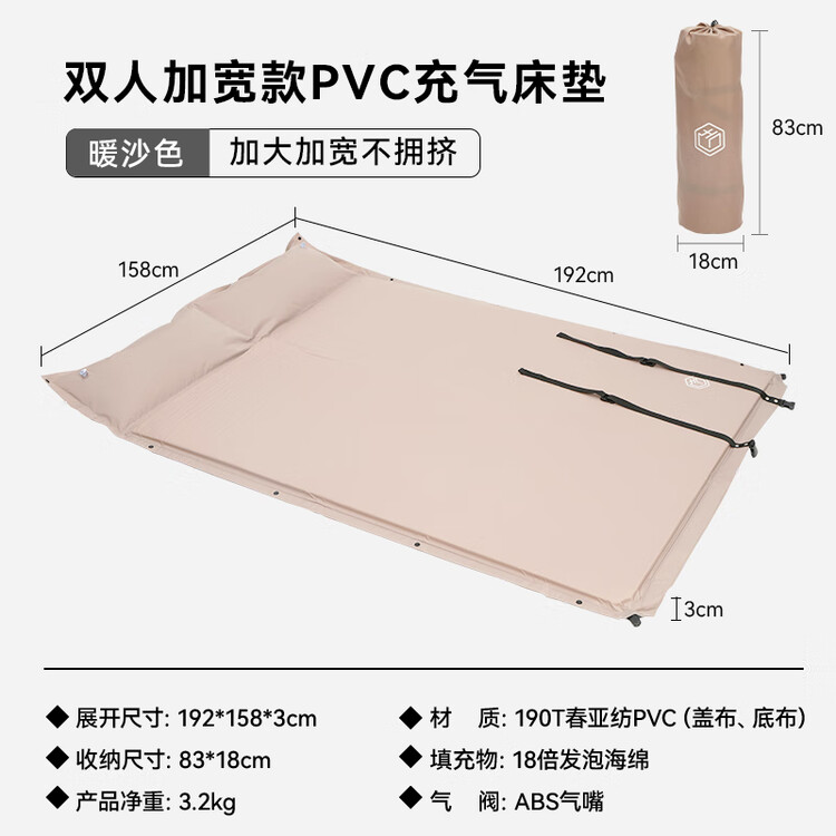 京东直供新 > 运动户外 >户外装备 >京东直供 >京东京造 自动充气床垫 户外露营防潮垫家用打地铺睡垫海绵双人加宽2-3人