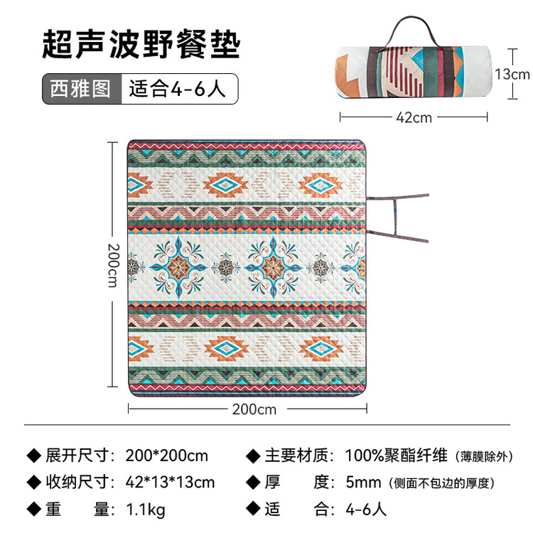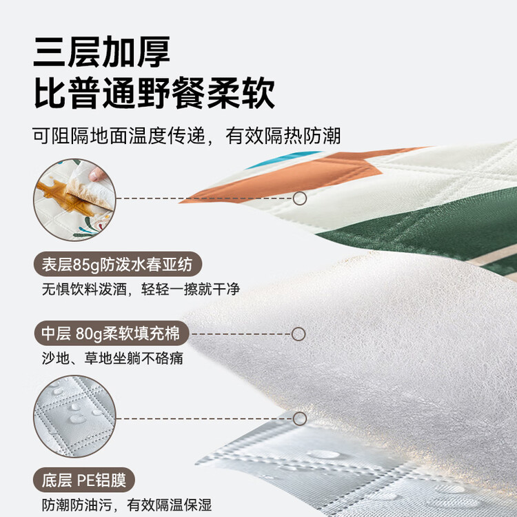 京东京造 户外野餐垫公园帐篷防潮垫露营垫超声波可机洗地垫西雅图2m*2m
