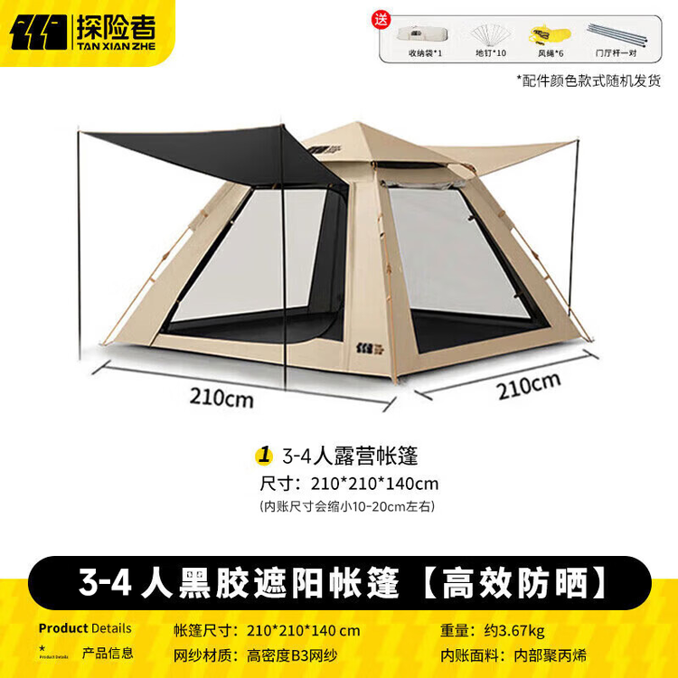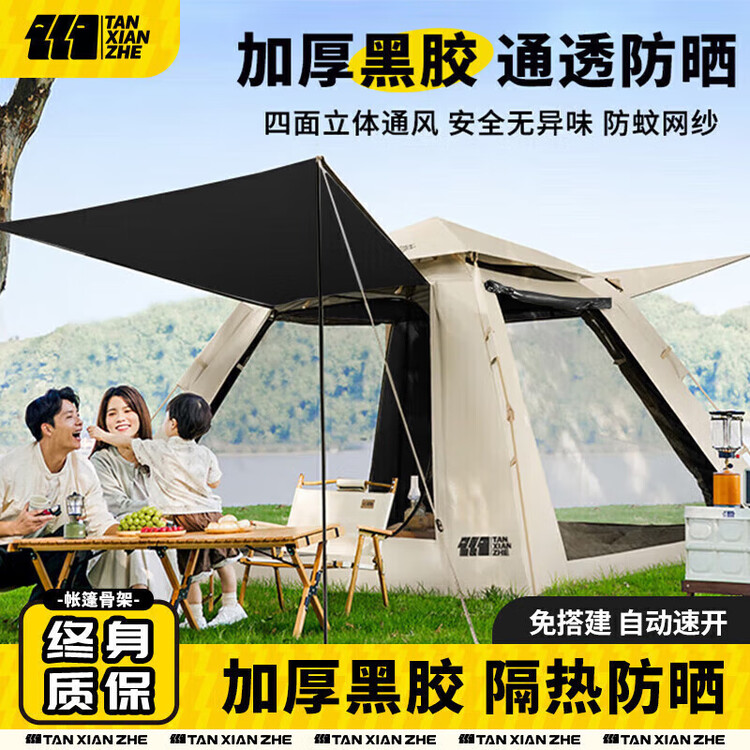 探险者(TAN XIAN ZHE)帐篷3-4人户外全自动便携式露营帐篷公园野餐黑胶防晒防雨
