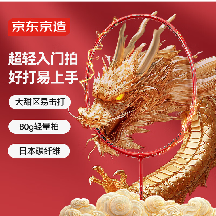 京东京造 4U鸿运龙吟 超轻全碳羽毛球拍单拍 均衡之刃赠球手胶