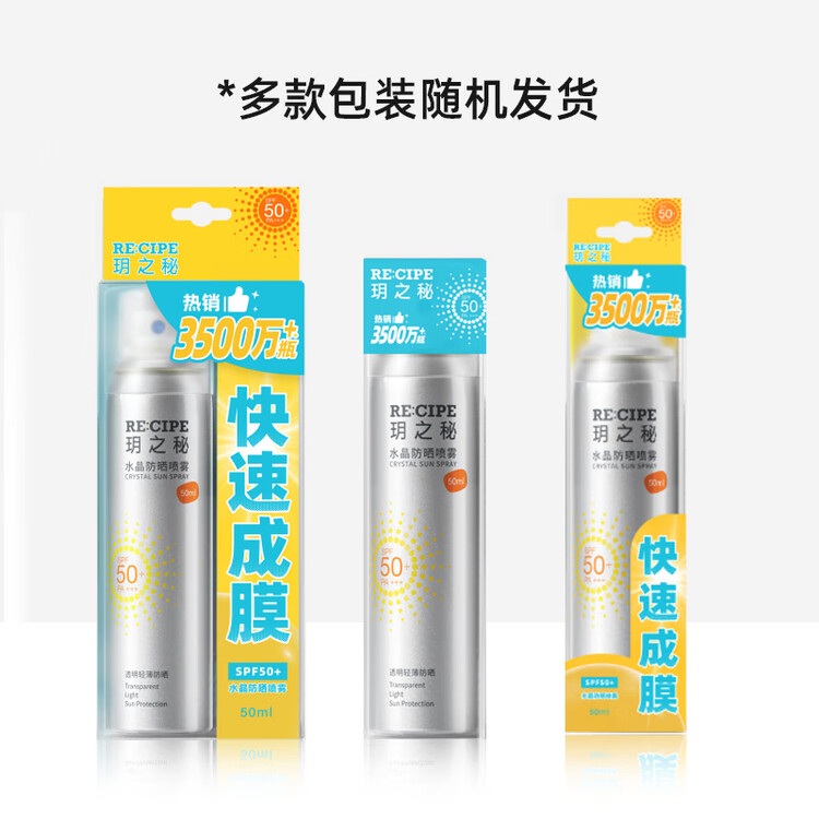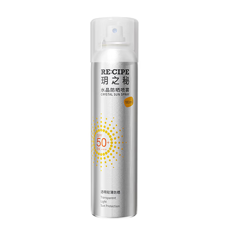 京东直供新 > 美妆护肤 >面部护肤 >京东直供 >RE:CIPE玥之秘水晶防晒喷雾180+50ml 防水防汗防晒喷雾套装SPF50