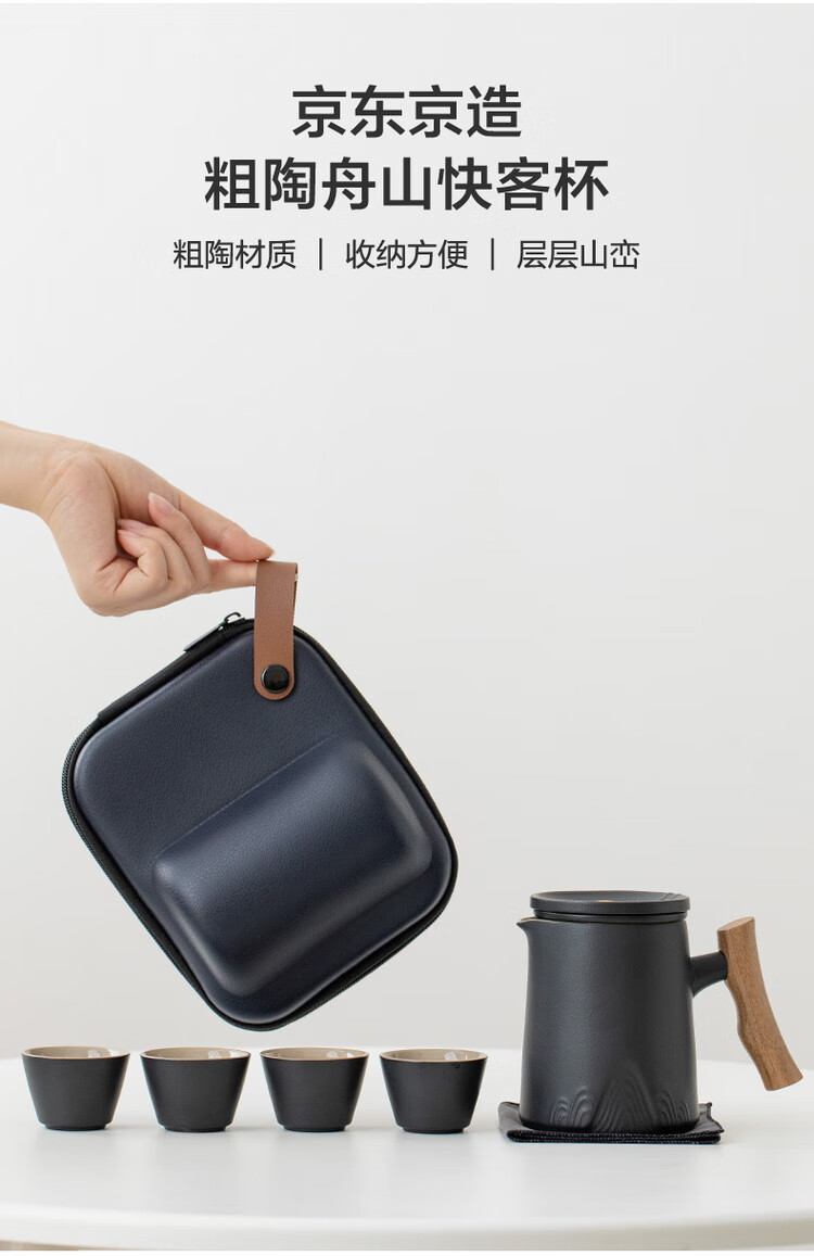 京东京造 旅行茶具 便携旅行茶具茶杯户外茶具整套黑陶舟山 一壶四杯
